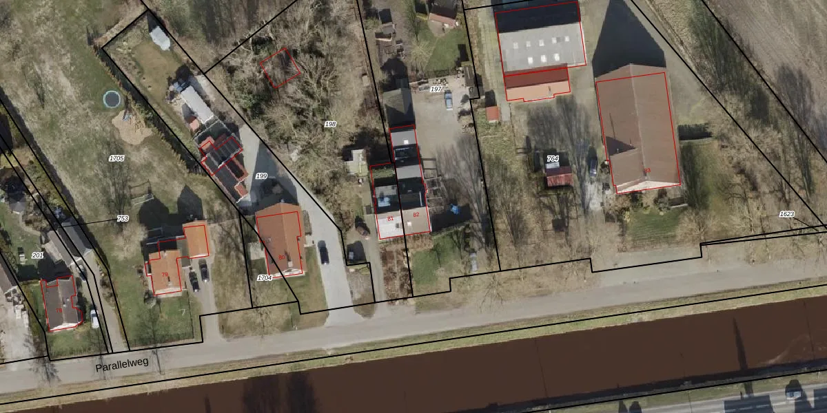 Parallelweg 82 is gelegen op kadastraal perceel GBG00I197. Deze kadastrale aanduiding is uniek en wordt gebruikt door het Kadaster om eigendomsrechten en andere zakelijke rechten vast te leggen. Het perceel maakt onderdeel uit van de kadastrale gemeente Gramsbergen.
