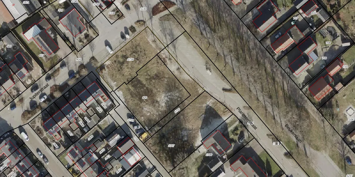 Het perceel waarop Planetenstraat 16 staat heeft een oppervlakte van 935 m². Dit is een groot perceel. De perceeloppervlakte wordt geregistreerd door het Kadaster. Gedetailleerde informatie over de maten van dit perceel kunt u vinden in het rapport Kadastrale kaart met maatvoering van Planetenstraat 16.