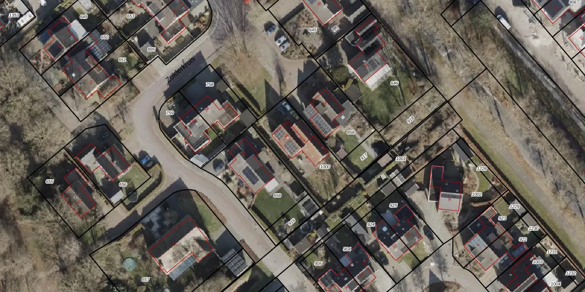 Het perceel waarop Zuiderkruis 56 staat heeft een oppervlakte van 570 m². Dit is een groot perceel. De perceeloppervlakte wordt geregistreerd door het Kadaster. Gedetailleerde informatie over de maten van dit perceel kunt u vinden in het rapport Kadastrale kaart met maatvoering van Zuiderkruis 56.