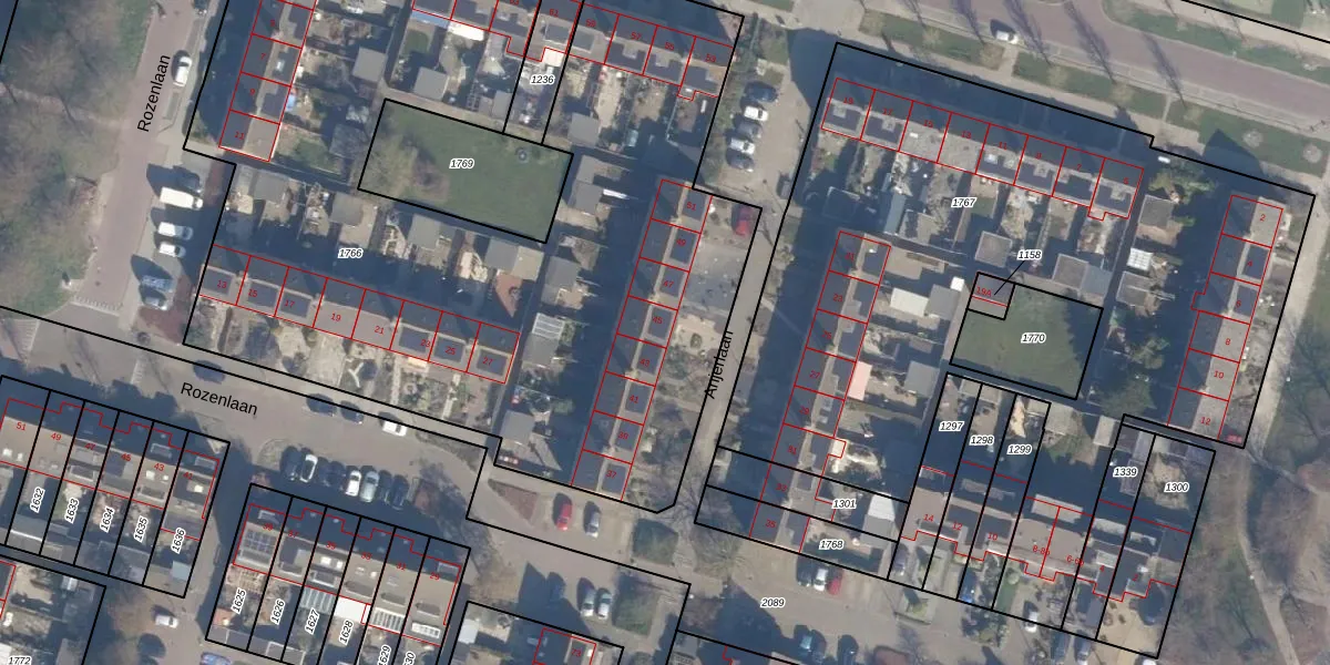 Het perceel waarop Anjerlaan 45 staat heeft een oppervlakte van 4981 m². Dit is een zeer groot perceel. De perceeloppervlakte wordt geregistreerd door het Kadaster. Gedetailleerde informatie over de maten van dit perceel kunt u vinden in het rapport Kadastrale kaart met maatvoering van Anjerlaan 45.