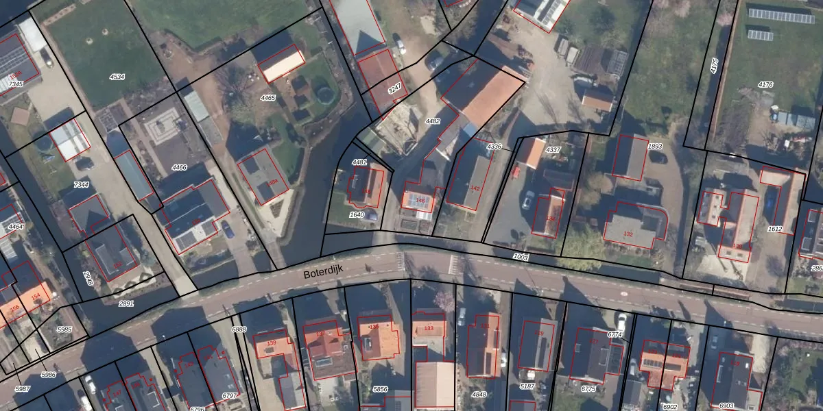 Het perceel waarop Boterdijk 146 staat heeft een oppervlakte van 818 m². Dit is een groot perceel. De perceeloppervlakte wordt geregistreerd door het Kadaster. Gedetailleerde informatie over de maten van dit perceel kunt u vinden in het rapport Kadastrale kaart met maatvoering van Boterdijk 146.