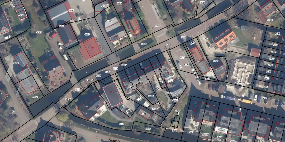 Het perceel waarop Boterdijk 191 staat heeft een oppervlakte van 192 m². Dit is een middelgroot perceel. De perceeloppervlakte wordt geregistreerd door het Kadaster. Gedetailleerde informatie over de maten van dit perceel kunt u vinden in het rapport Kadastrale kaart met maatvoering van Boterdijk 191.