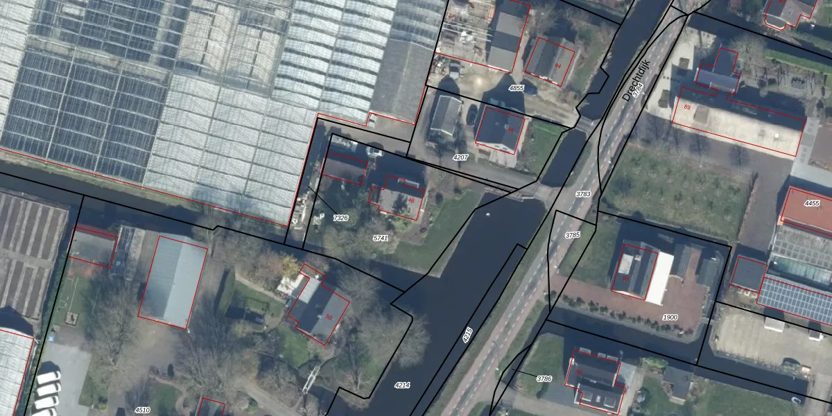 Het perceel waarop Drechtdijk 48 staat heeft een oppervlakte van 1030 m². Dit is een zeer groot perceel. De perceeloppervlakte wordt geregistreerd door het Kadaster. Gedetailleerde informatie over de maten van dit perceel kunt u vinden in het rapport Kadastrale kaart met maatvoering van Drechtdijk 48.