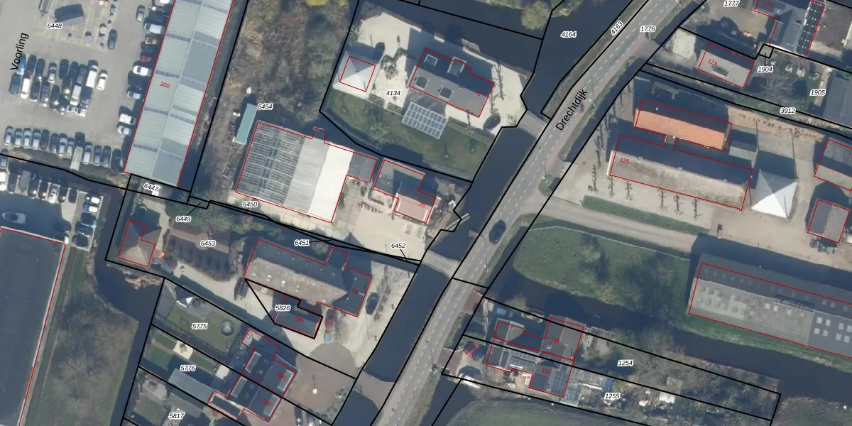 Het perceel waarop Drechtdijk 76 staat heeft een oppervlakte van 2189 m². Dit is een zeer groot perceel. De perceeloppervlakte wordt geregistreerd door het Kadaster. Gedetailleerde informatie over de maten van dit perceel kunt u vinden in het rapport Kadastrale kaart met maatvoering van Drechtdijk 76.