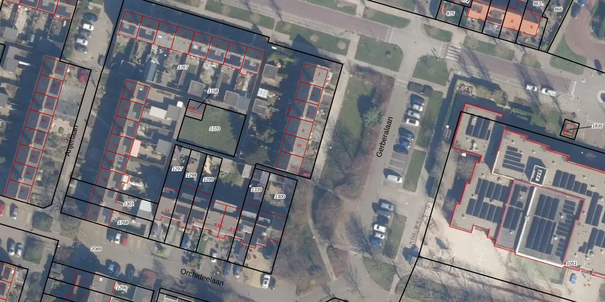 Het perceel waarop Gerberalaan 10 staat heeft een oppervlakte van 3852 m². Dit is een zeer groot perceel. De perceeloppervlakte wordt geregistreerd door het Kadaster. Gedetailleerde informatie over de maten van dit perceel kunt u vinden in het rapport Kadastrale kaart met maatvoering van Gerberalaan 10.