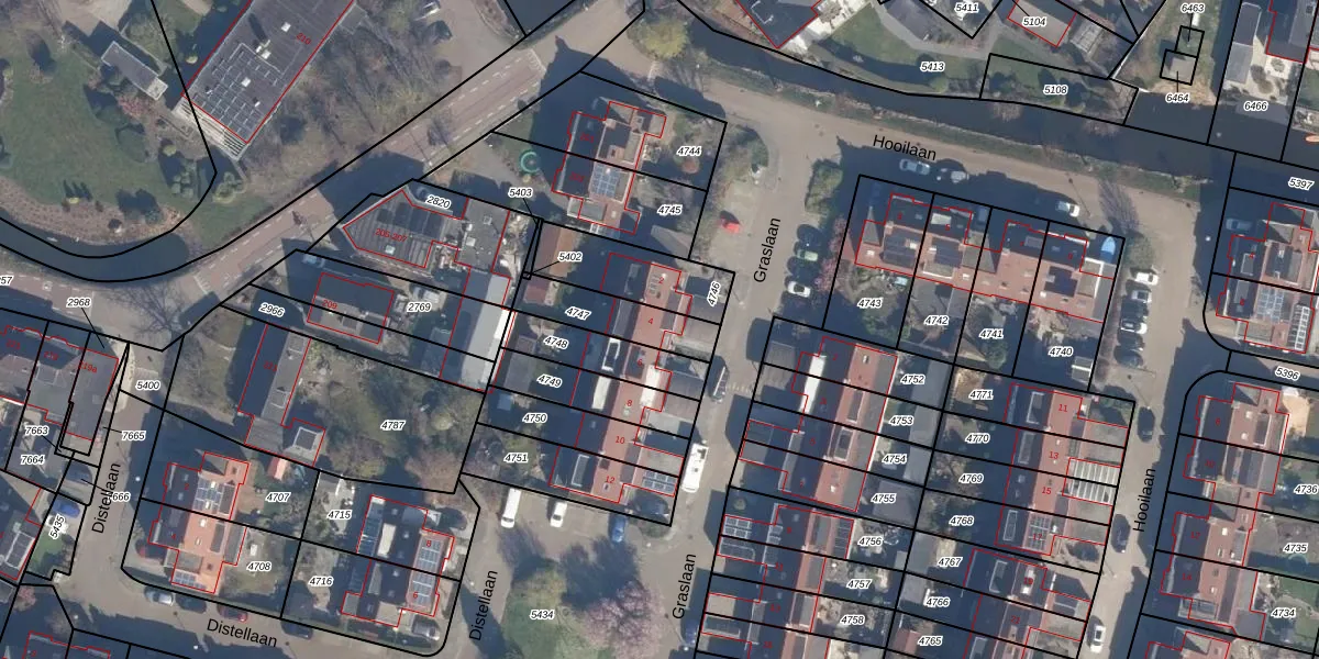 Het perceel waarop Graslaan 4 staat heeft een oppervlakte van 187 m². Dit is een middelgroot perceel. De perceeloppervlakte wordt geregistreerd door het Kadaster. Gedetailleerde informatie over de maten van dit perceel kunt u vinden in het rapport Kadastrale kaart met maatvoering van Graslaan 4.