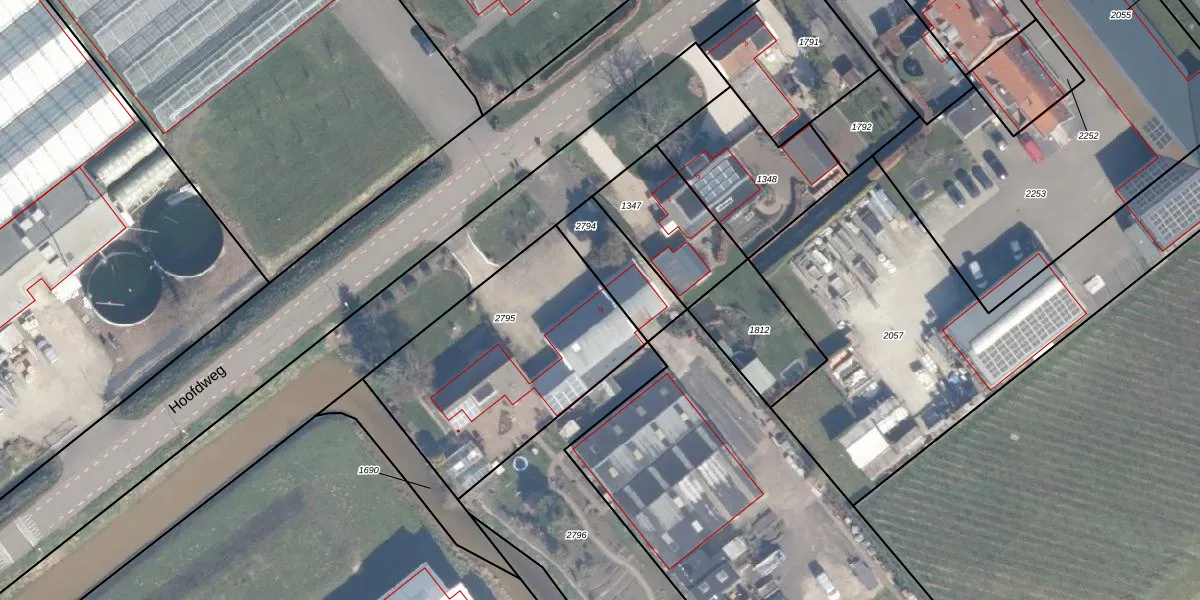 Het perceel waarop Hoofdweg 9 staat heeft een oppervlakte van 1039 m². Dit is een zeer groot perceel. De perceeloppervlakte wordt geregistreerd door het Kadaster. Gedetailleerde informatie over de maten van dit perceel kunt u vinden in het rapport Kadastrale kaart met maatvoering van Hoofdweg 9.