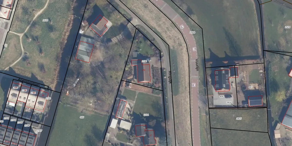 Het perceel waarop Ringdijk 17-b staat heeft een oppervlakte van 755 m². Dit is een groot perceel. De perceeloppervlakte wordt geregistreerd door het Kadaster. Gedetailleerde informatie over de maten van dit perceel kunt u vinden in het rapport Kadastrale kaart met maatvoering van Ringdijk 17-b.