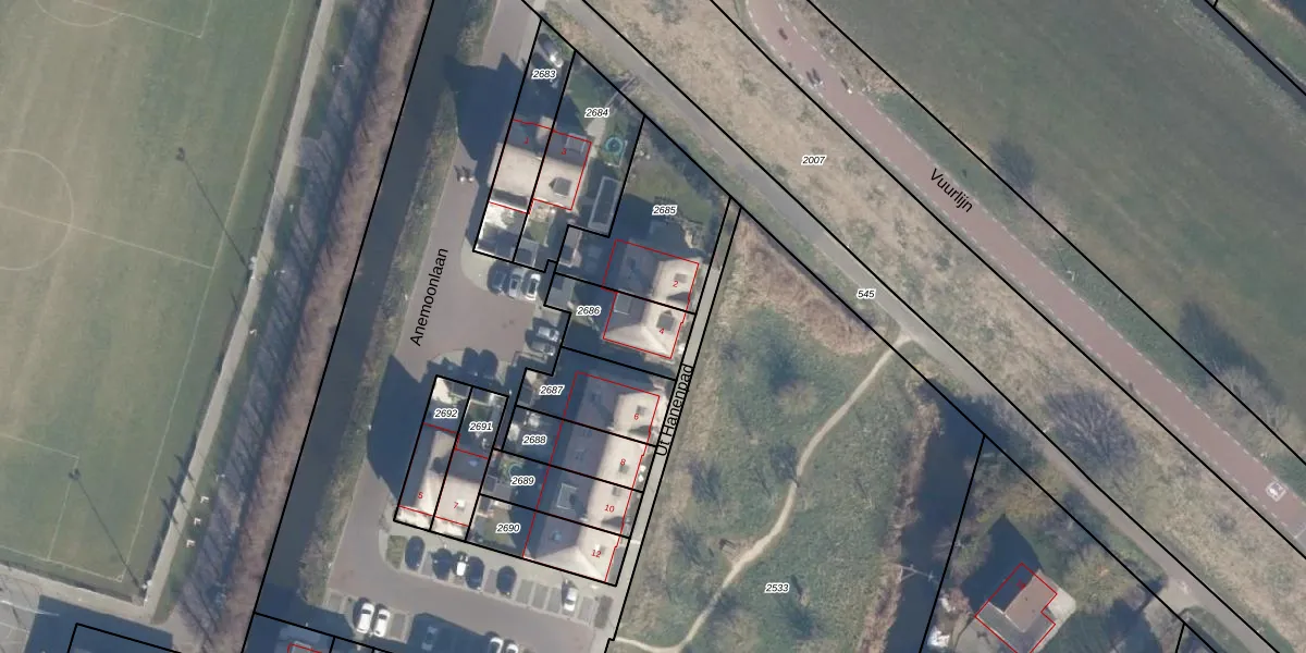 Ut Hanenpad 4 is gelegen op kadastraal perceel UHN00A2686. Deze kadastrale aanduiding is uniek en wordt gebruikt door het Kadaster om eigendomsrechten en andere zakelijke rechten vast te leggen. Het perceel maakt onderdeel uit van de kadastrale gemeente Uithoorn.