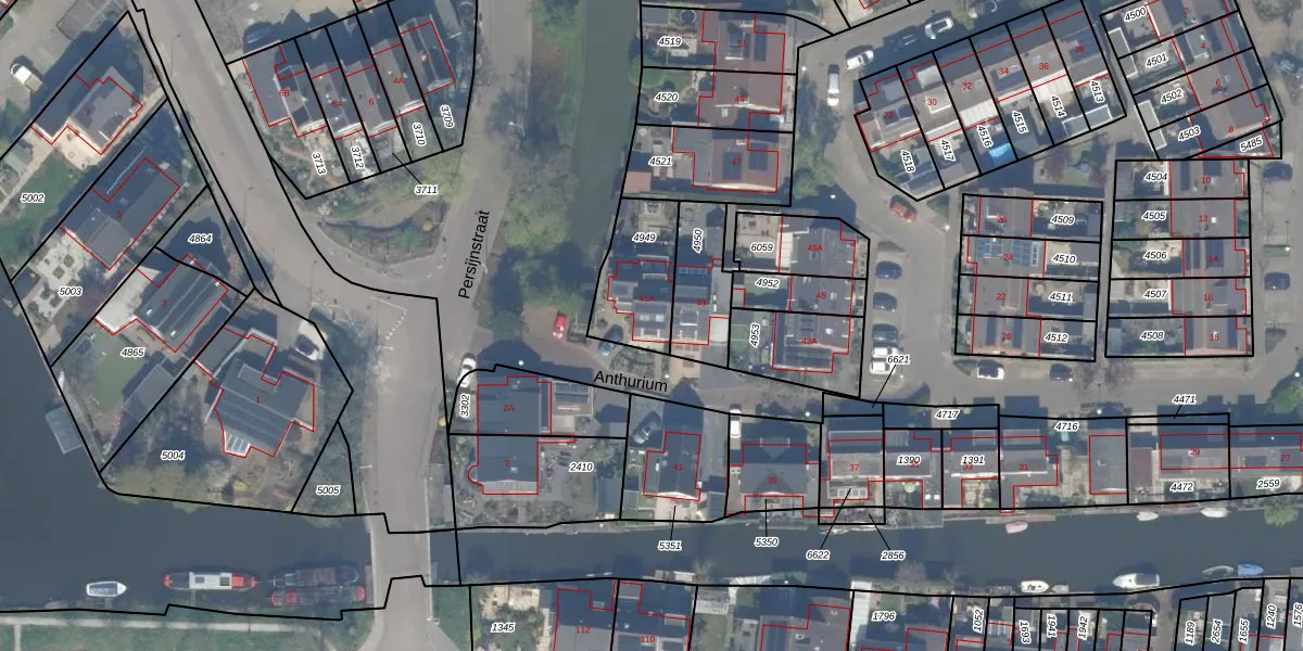 Gebruik de zoekbalk of klik op een perceel voor informatie over de adressen binnen dit perceel.