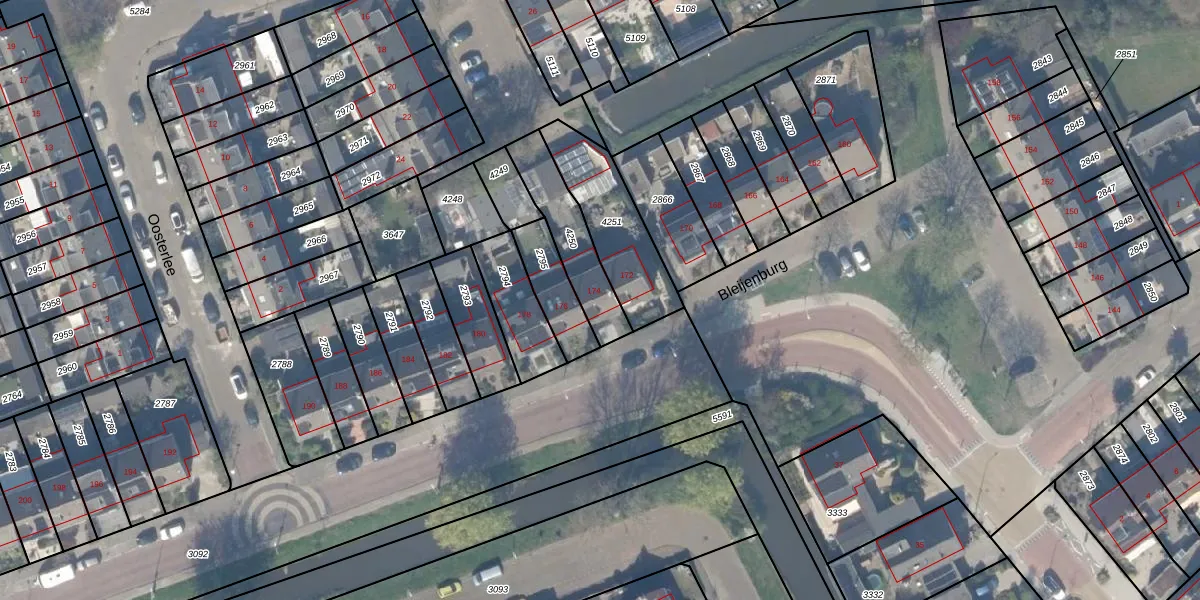 Het perceel waarop Bleijenburg 174 staat heeft een oppervlakte van 223 m². Dit is een middelgroot perceel. De perceeloppervlakte wordt geregistreerd door het Kadaster. Gedetailleerde informatie over de maten van dit perceel kunt u vinden in het rapport Kadastrale kaart met maatvoering van Bleijenburg 174.