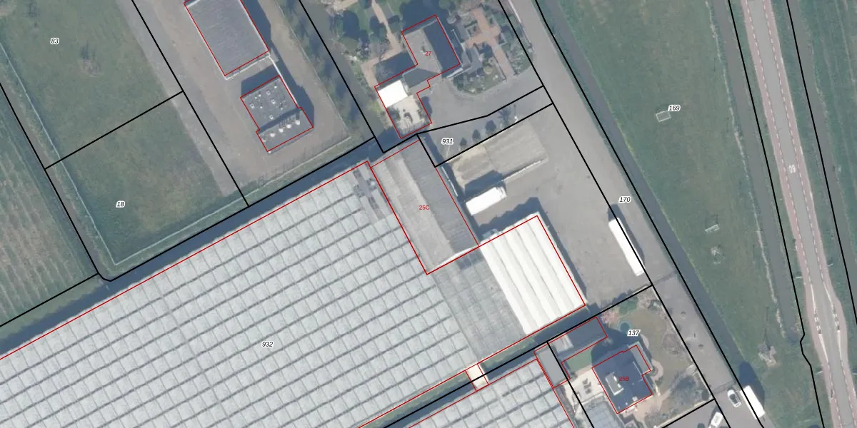Het perceel waarop het adres ligt is LIE00-I-932. De afkorting 'LIE00' staat voor kadastrale gemeente De Lier. De oppervlakte van het perceel is 1,1 ha. Dat is groter dan gemiddeld in De Lier, waar de gemiddelde perceeloppervlakte op 1970,08 m² ligt. Het grootste perceel in de kadastrale gemeente is 22,3 ha. Het kleinste perceel heeft een oppervlakte van 0 m². Er zijn geen andere adressen aanwezig op het perceel. De huidige grenzen van het perceel zijn digitaal in de Basisregistratie Kadaster (BRK) geregistreerd op 11-03-2011.