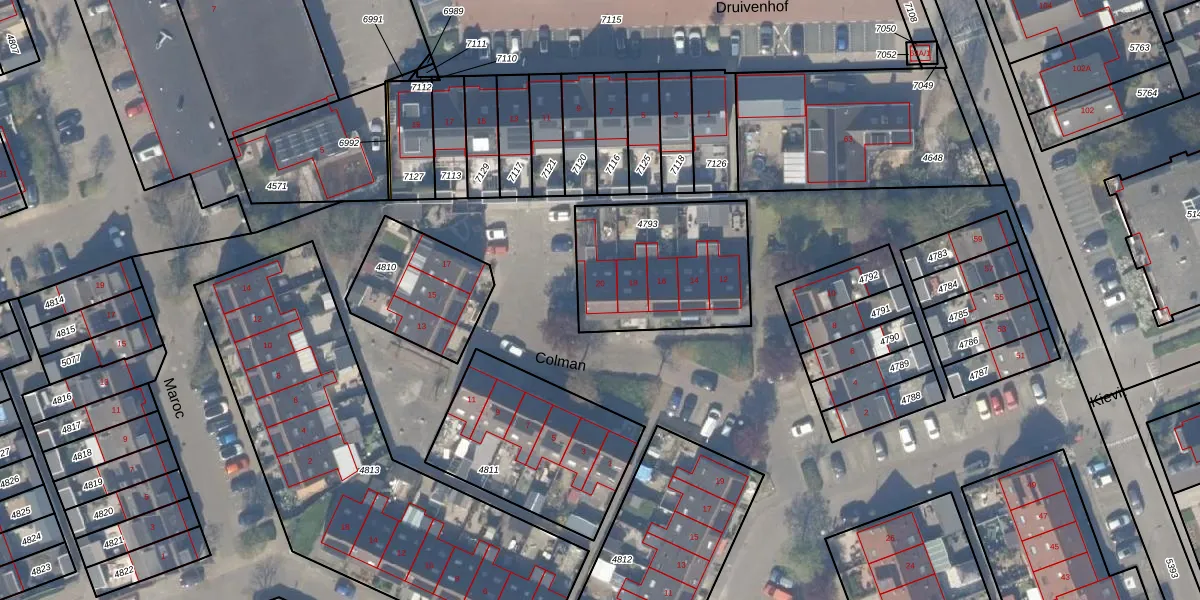 Het perceel waarop Colman 20 staat heeft een oppervlakte van 595 m². Dit is een groot perceel. De perceeloppervlakte wordt geregistreerd door het Kadaster. Gedetailleerde informatie over de maten van dit perceel kunt u vinden in het rapport Kadastrale kaart met maatvoering van Colman 20.