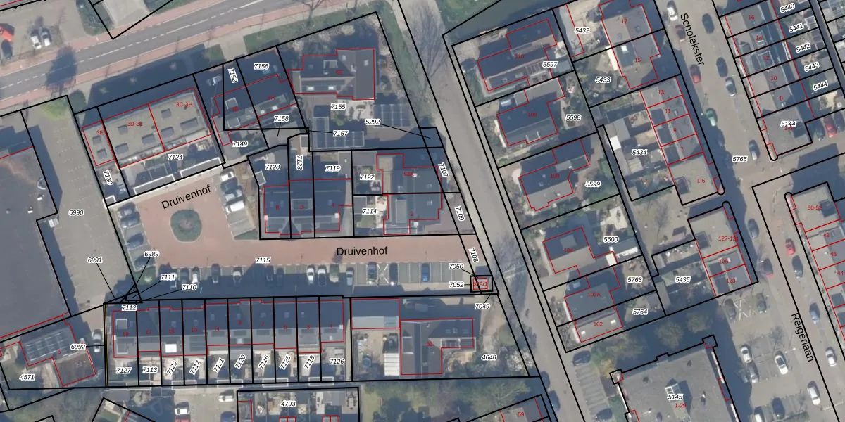 Het perceel waarop Druivenhof 2 staat heeft een oppervlakte van 232 m². Dit is een middelgroot perceel. De perceeloppervlakte wordt geregistreerd door het Kadaster. Gedetailleerde informatie over de maten van dit perceel kunt u vinden in het rapport Kadastrale kaart met maatvoering van Druivenhof 2.