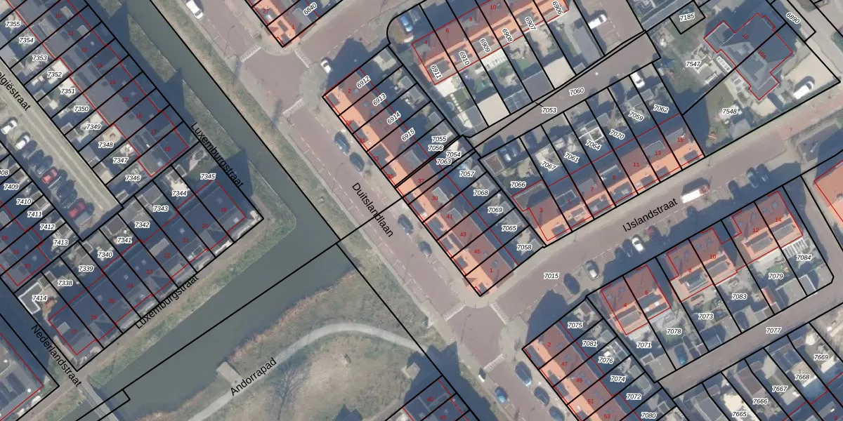 Het perceel waarop Duitslandlaan 39 staat heeft een oppervlakte van 108 m². Dit is een middelgroot perceel. De perceeloppervlakte wordt geregistreerd door het Kadaster. Gedetailleerde informatie over de maten van dit perceel kunt u vinden in het rapport Kadastrale kaart met maatvoering van Duitslandlaan 39.