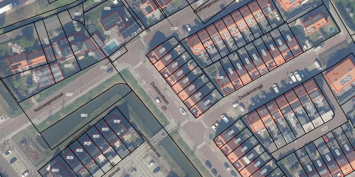 Het perceel waarop Duitslandlaan 7 staat heeft een oppervlakte van 107 m². Dit is een middelgroot perceel. De perceeloppervlakte wordt geregistreerd door het Kadaster. Gedetailleerde informatie over de maten van dit perceel kunt u vinden in het rapport Kadastrale kaart met maatvoering van Duitslandlaan 7.