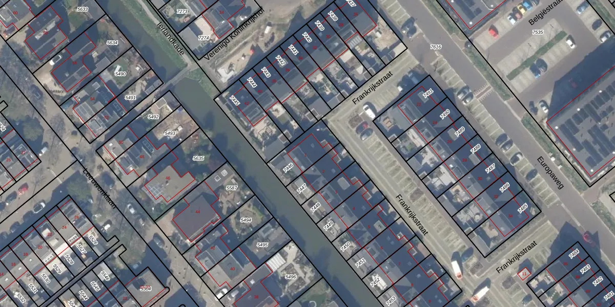 Het perceel waarop Frankrijkstraat 1 staat heeft een oppervlakte van 227 m². Dit is een middelgroot perceel. De perceeloppervlakte wordt geregistreerd door het Kadaster. Gedetailleerde informatie over de maten van dit perceel kunt u vinden in het rapport Kadastrale kaart met maatvoering van Frankrijkstraat 1.