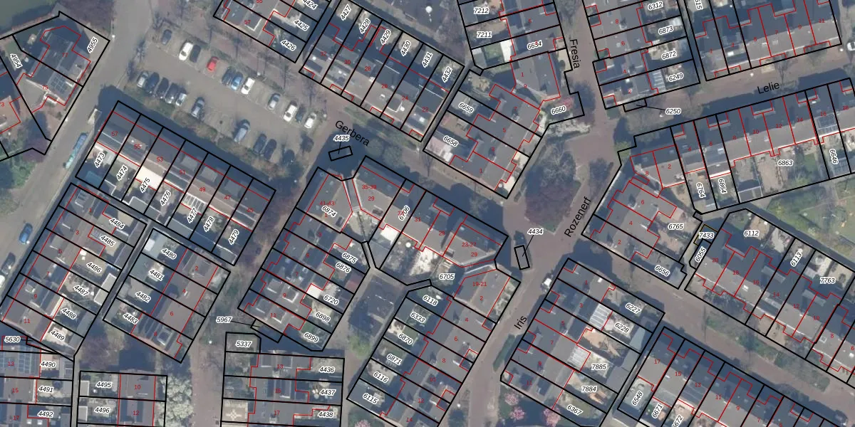 Het perceel waarop Gerbera 31 staat heeft een oppervlakte van 530 m². Dit is een groot perceel. De perceeloppervlakte wordt geregistreerd door het Kadaster. Gedetailleerde informatie over de maten van dit perceel kunt u vinden in het rapport Kadastrale kaart met maatvoering van Gerbera 31.