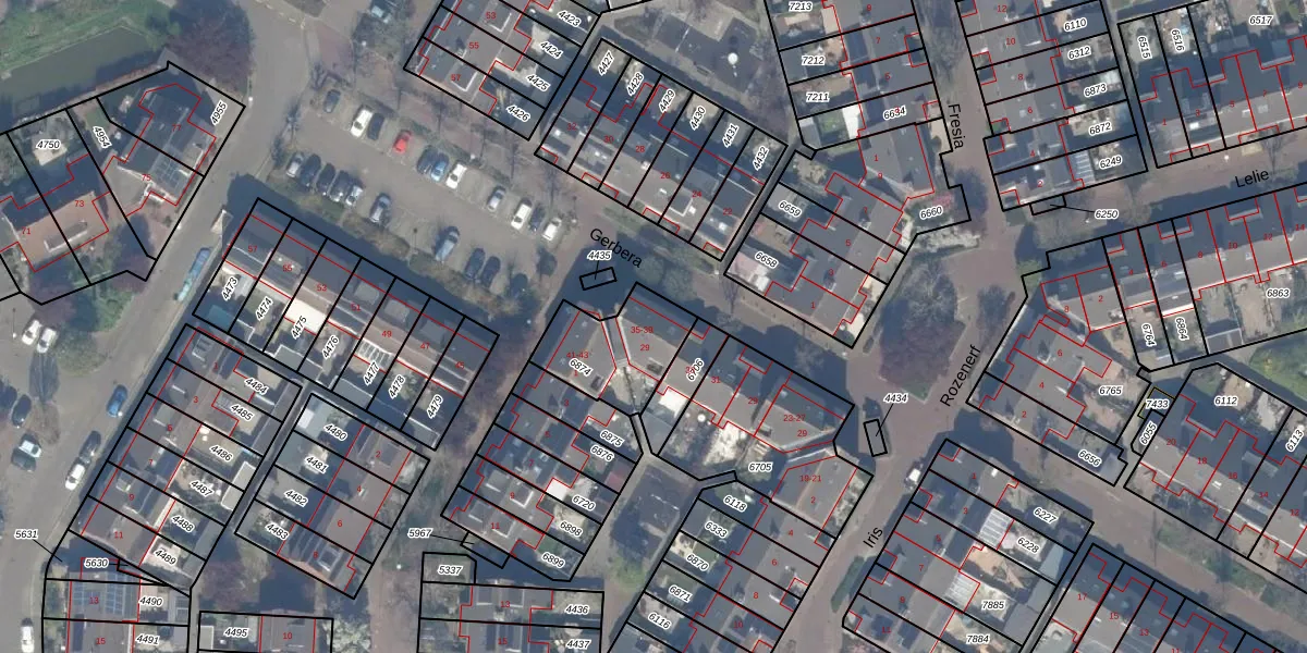 Het perceel waarop Gerbera 35 staat heeft een oppervlakte van 289 m². Dit is een middelgroot perceel. De perceeloppervlakte wordt geregistreerd door het Kadaster. Gedetailleerde informatie over de maten van dit perceel kunt u vinden in het rapport Kadastrale kaart met maatvoering van Gerbera 35.