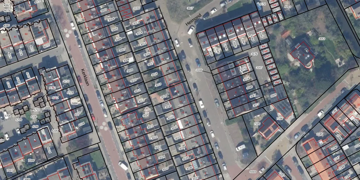 Het perceel waarop Heimond 19 staat heeft een oppervlakte van 154 m². Dit is een middelgroot perceel. De perceeloppervlakte wordt geregistreerd door het Kadaster. Gedetailleerde informatie over de maten van dit perceel kunt u vinden in het rapport Kadastrale kaart met maatvoering van Heimond 19.