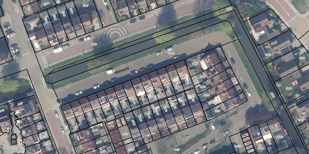Het perceel waarop Heimond 69 staat heeft een oppervlakte van 116 m². Dit is een middelgroot perceel. De perceeloppervlakte wordt geregistreerd door het Kadaster. Gedetailleerde informatie over de maten van dit perceel kunt u vinden in het rapport Kadastrale kaart met maatvoering van Heimond 69.