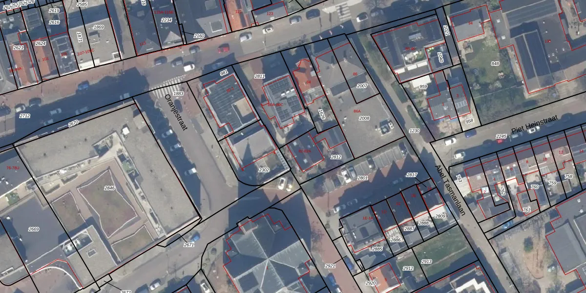 Gebruik de zoekbalk of klik op een perceel voor informatie over de adressen binnen dit perceel.
