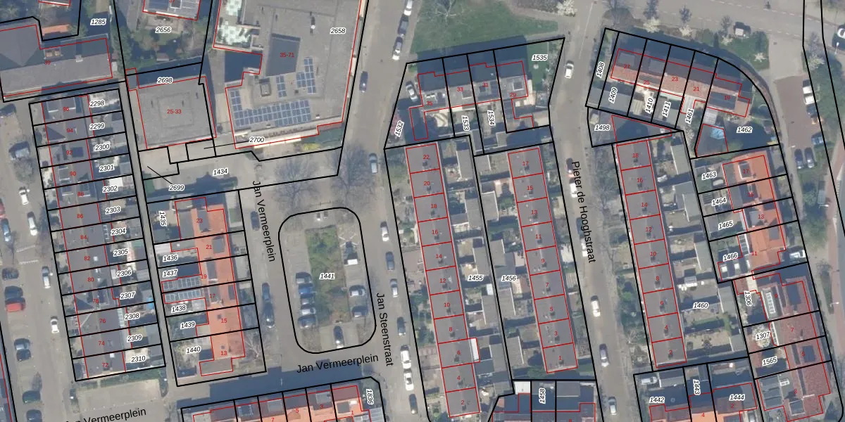 Het perceel waarop Jan Steenstraat 18 staat heeft een oppervlakte van 1405 m². Dit is een zeer groot perceel. De perceeloppervlakte wordt geregistreerd door het Kadaster. Gedetailleerde informatie over de maten van dit perceel kunt u vinden in het rapport Kadastrale kaart met maatvoering van Jan Steenstraat 18.