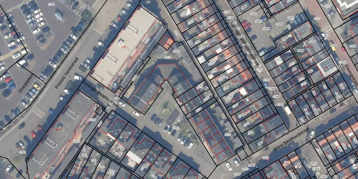 Het perceel waarop Koningin Beatrixstraat 13 staat heeft een oppervlakte van 909 m². Dit is een groot perceel. De perceeloppervlakte wordt geregistreerd door het Kadaster. Gedetailleerde informatie over de maten van dit perceel kunt u vinden in het rapport Kadastrale kaart met maatvoering van Koningin Beatrixstraat 13.