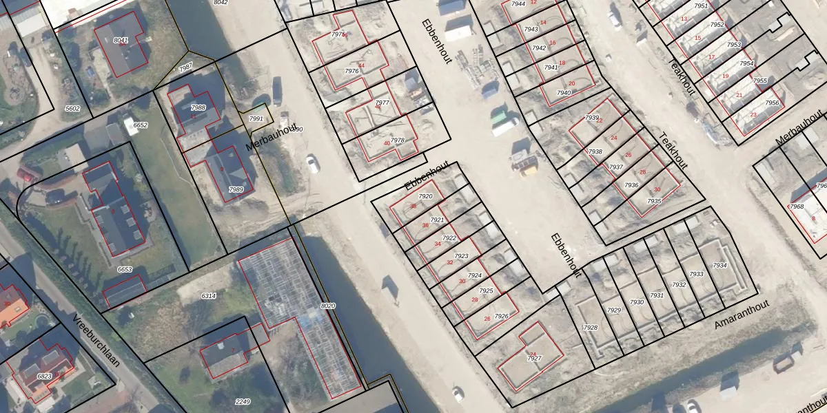 Het perceel waarop Merbauhout 38 staat heeft een oppervlakte van 172 m². Dit is een middelgroot perceel. De perceeloppervlakte wordt geregistreerd door het Kadaster. Gedetailleerde informatie over de maten van dit perceel kunt u vinden in het rapport Kadastrale kaart met maatvoering van Merbauhout 38.