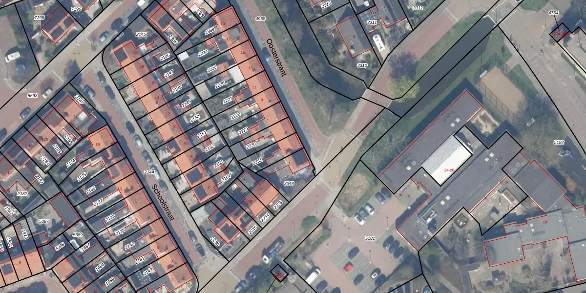 Gebruik de zoekbalk of klik op een perceel voor informatie over de adressen binnen dit perceel.