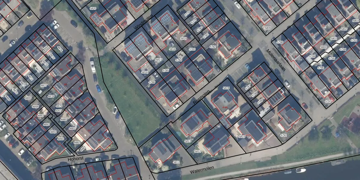 Het perceel waarop Rosmolen 3 staat heeft een oppervlakte van 224 m². Dit is een middelgroot perceel. De perceeloppervlakte wordt geregistreerd door het Kadaster. Gedetailleerde informatie over de maten van dit perceel kunt u vinden in het rapport Kadastrale kaart met maatvoering van Rosmolen 3.