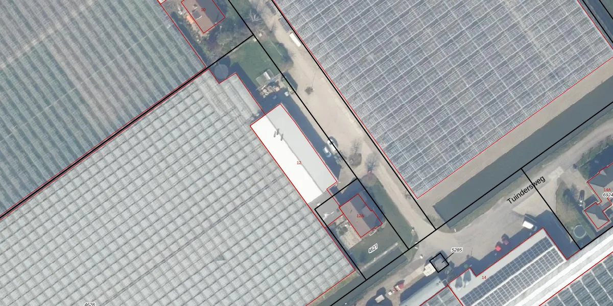 Tuindersweg 12 is gelegen op kadastraal perceel LIE00A4628. Deze kadastrale aanduiding is uniek en wordt gebruikt door het Kadaster om eigendomsrechten en andere zakelijke rechten vast te leggen. Het perceel maakt onderdeel uit van de kadastrale gemeente De Lier.