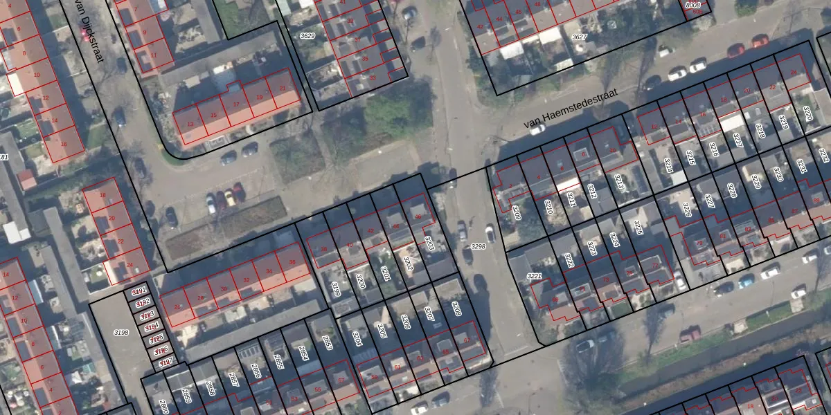Het perceel waarop van Dijckstraat 46 staat heeft een oppervlakte van 184 m². Dit is een middelgroot perceel. De perceeloppervlakte wordt geregistreerd door het Kadaster. Gedetailleerde informatie over de maten van dit perceel kunt u vinden in het rapport Kadastrale kaart met maatvoering van van Dijckstraat 46.