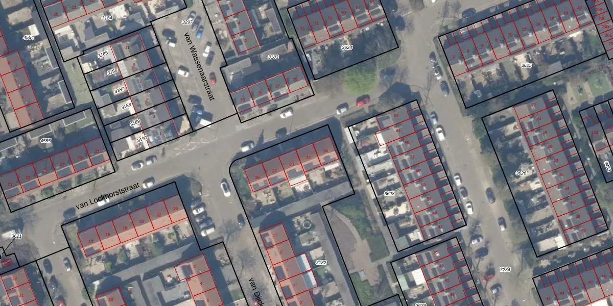 van Lockhorststraat 32 is gelegen op kadastraal perceel LIE00A3182. Deze kadastrale aanduiding is uniek en wordt gebruikt door het Kadaster om eigendomsrechten en andere zakelijke rechten vast te leggen. Het perceel maakt onderdeel uit van de kadastrale gemeente De Lier.