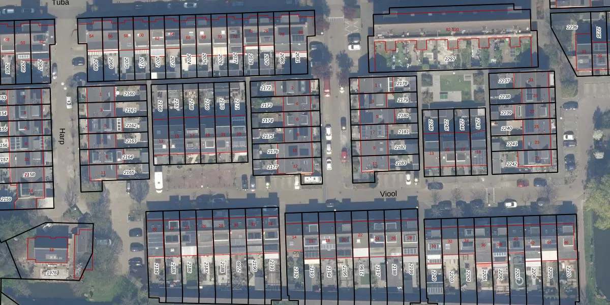 Gebruik de zoekbalk of klik op een perceel voor informatie over de adressen binnen dit perceel.