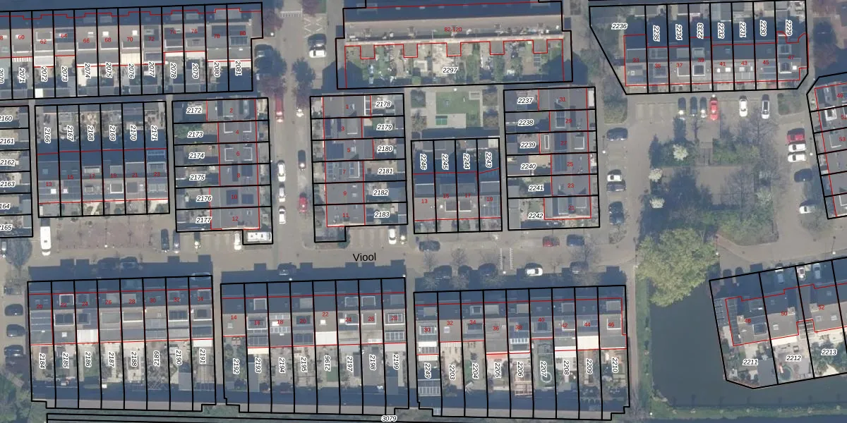 Gebruik de zoekbalk of klik op een perceel voor informatie over de adressen binnen dit perceel.