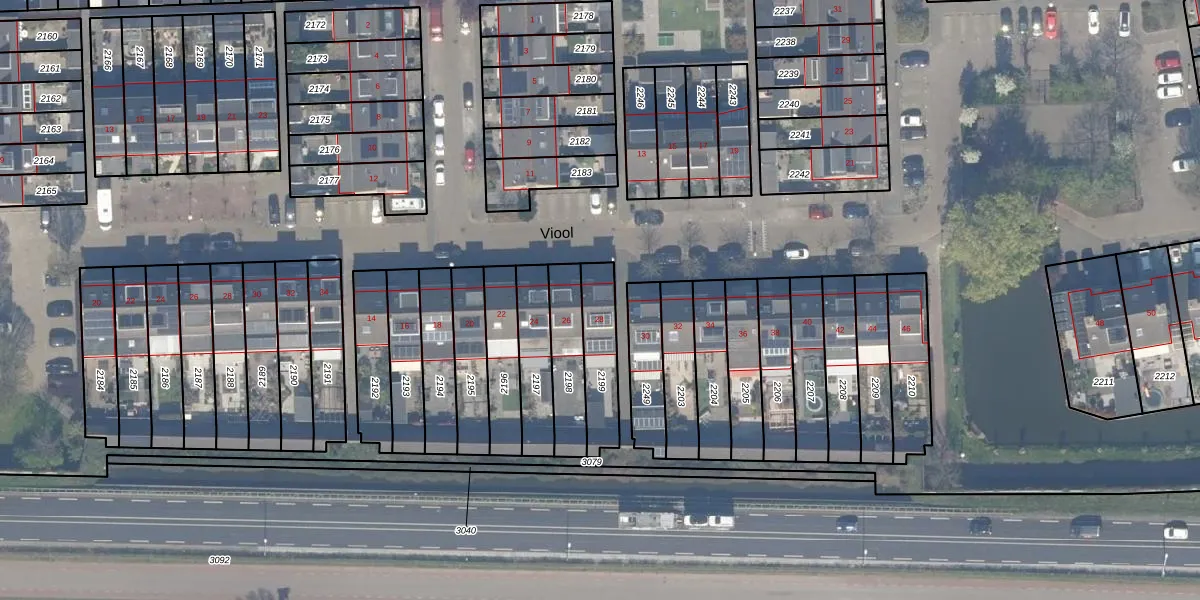 Het perceel waarop Viool 28 staat heeft een oppervlakte van 173 m². Dit is een middelgroot perceel. De perceeloppervlakte wordt geregistreerd door het Kadaster. Gedetailleerde informatie over de maten van dit perceel kunt u vinden in het rapport Kadastrale kaart met maatvoering van Viool 28.