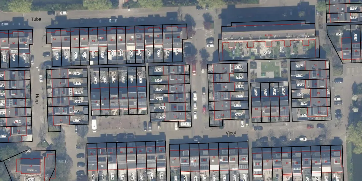 Het perceel waarop Viool 6 staat heeft een oppervlakte van 115 m². Dit is een middelgroot perceel. De perceeloppervlakte wordt geregistreerd door het Kadaster. Gedetailleerde informatie over de maten van dit perceel kunt u vinden in het rapport Kadastrale kaart met maatvoering van Viool 6.