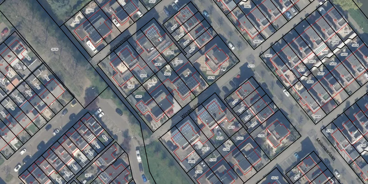 Het perceel waarop Windmolen 5 staat heeft een oppervlakte van 223 m². Dit is een middelgroot perceel. De perceeloppervlakte wordt geregistreerd door het Kadaster. Gedetailleerde informatie over de maten van dit perceel kunt u vinden in het rapport Kadastrale kaart met maatvoering van Windmolen 5.