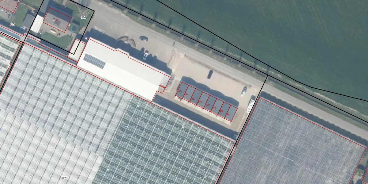 Het adres ligt op het perceel LIE00-H-597, dat zich in de kadastrale gemeente De Lier bevindt. De oppervlakte van het perceel is 2,7 ha. Dat is groter dan gemiddeld in De Lier, waar de gemiddelde perceeloppervlakte op 1971,88 m² ligt. Het kleinste perceel in de kadastrale gemeente is 0 m² groot. De grootste perceeloppervlakte is 22,3 ha. Op het perceel liggen in totaal 9 adressen. De laatste wijziging in het de Basisregistratie Kadaster (BRK) was op 07-12-2009.