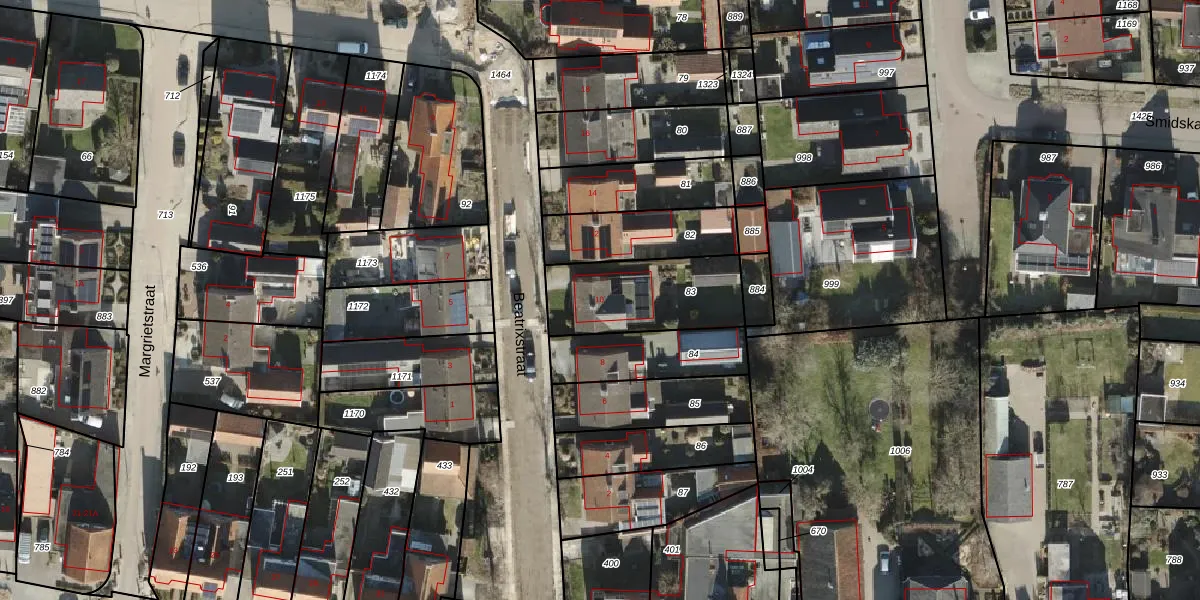 Het perceel waarop Beatrixstraat 10 staat heeft een oppervlakte van 391 m². Dit is een groot perceel. De perceeloppervlakte wordt geregistreerd door het Kadaster. Gedetailleerde informatie over de maten van dit perceel kunt u vinden in het rapport Kadastrale kaart met maatvoering van Beatrixstraat 10.