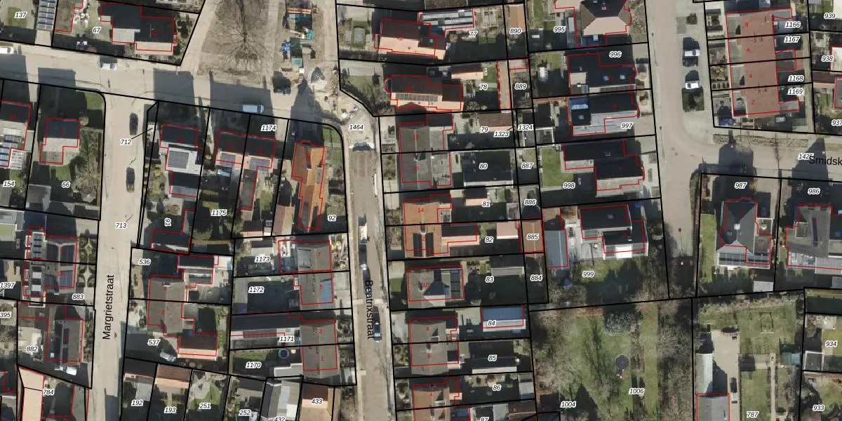 Het perceel waarop Beatrixstraat 14 staat heeft een oppervlakte van 259 m². Dit is een middelgroot perceel. De perceeloppervlakte wordt geregistreerd door het Kadaster. Gedetailleerde informatie over de maten van dit perceel kunt u vinden in het rapport Kadastrale kaart met maatvoering van Beatrixstraat 14.