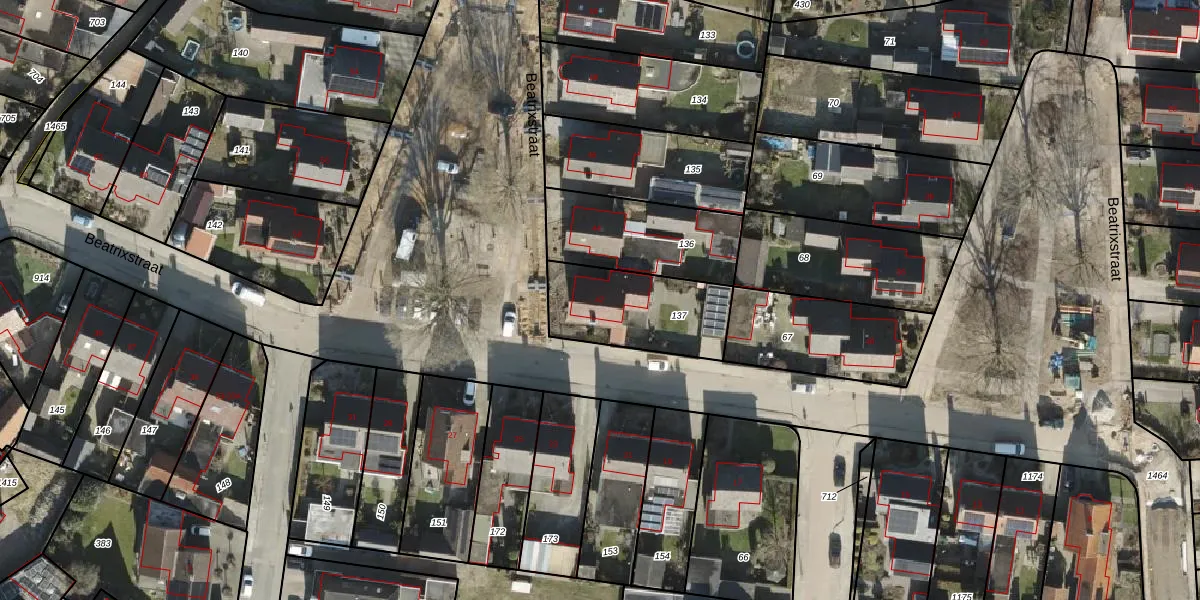 Het perceel waarop Beatrixstraat 42 staat heeft een oppervlakte van 396 m². Dit is een groot perceel. De perceeloppervlakte wordt geregistreerd door het Kadaster. Gedetailleerde informatie over de maten van dit perceel kunt u vinden in het rapport Kadastrale kaart met maatvoering van Beatrixstraat 42.