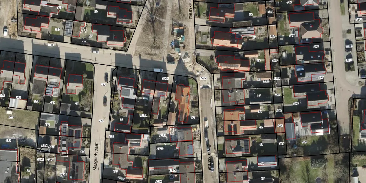 Het perceel waarop Beatrixstraat 9 staat heeft een oppervlakte van 399 m². Dit is een groot perceel. De perceeloppervlakte wordt geregistreerd door het Kadaster. Gedetailleerde informatie over de maten van dit perceel kunt u vinden in het rapport Kadastrale kaart met maatvoering van Beatrixstraat 9.