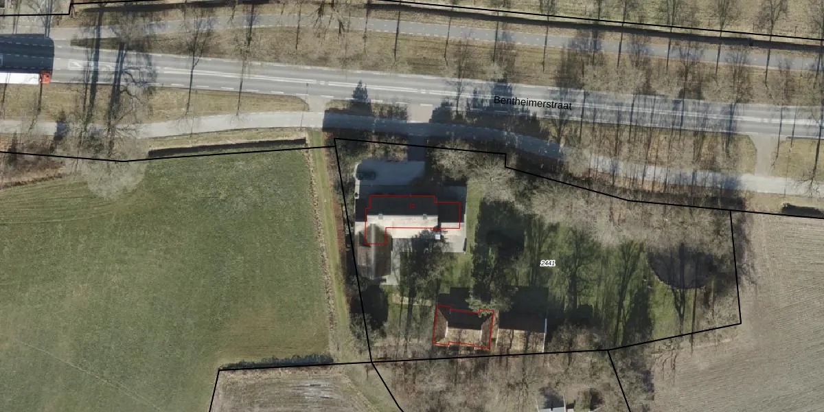 Bentheimerstraat 22 is gelegen op kadastraal perceel LSR00G2441. Deze kadastrale aanduiding is uniek en wordt gebruikt door het Kadaster om eigendomsrechten en andere zakelijke rechten vast te leggen. Het perceel maakt onderdeel uit van de kadastrale gemeente Losser.