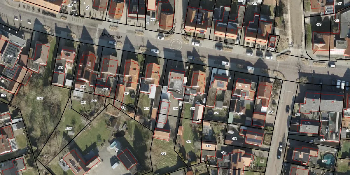 Het perceel waarop Dorpstraat 16-A staat heeft een oppervlakte van 409 m². Dit is een groot perceel. De perceeloppervlakte wordt geregistreerd door het Kadaster. Gedetailleerde informatie over de maten van dit perceel kunt u vinden in het rapport Kadastrale kaart met maatvoering van Dorpstraat 16-A.