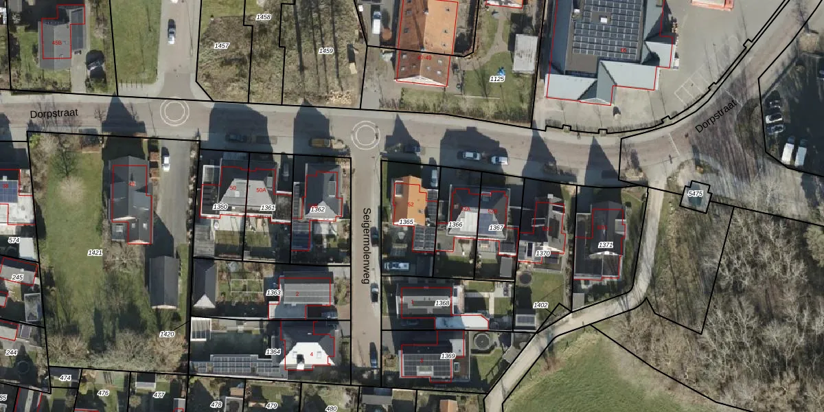Het perceel waarop Dorpstraat 52 staat heeft een oppervlakte van 370 m². Dit is een groot perceel. De perceeloppervlakte wordt geregistreerd door het Kadaster. Gedetailleerde informatie over de maten van dit perceel kunt u vinden in het rapport Kadastrale kaart met maatvoering van Dorpstraat 52.