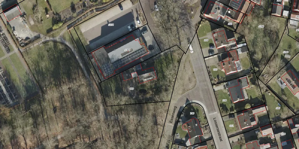 Essenweg 2 is gelegen op kadastraal perceel LSR00O669. Deze kadastrale aanduiding is uniek en wordt gebruikt door het Kadaster om eigendomsrechten en andere zakelijke rechten vast te leggen. Het perceel maakt onderdeel uit van de kadastrale gemeente Losser.