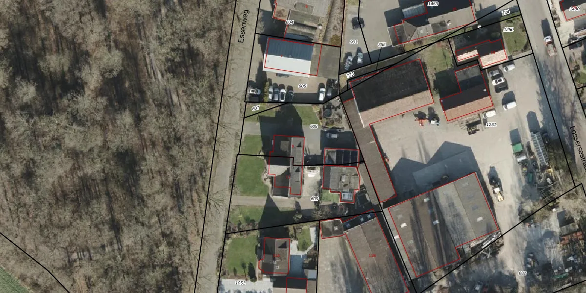 Essenweg 9 is gelegen op kadastraal perceel LSR00O608. Deze kadastrale aanduiding is uniek en wordt gebruikt door het Kadaster om eigendomsrechten en andere zakelijke rechten vast te leggen. Het perceel maakt onderdeel uit van de kadastrale gemeente Losser.