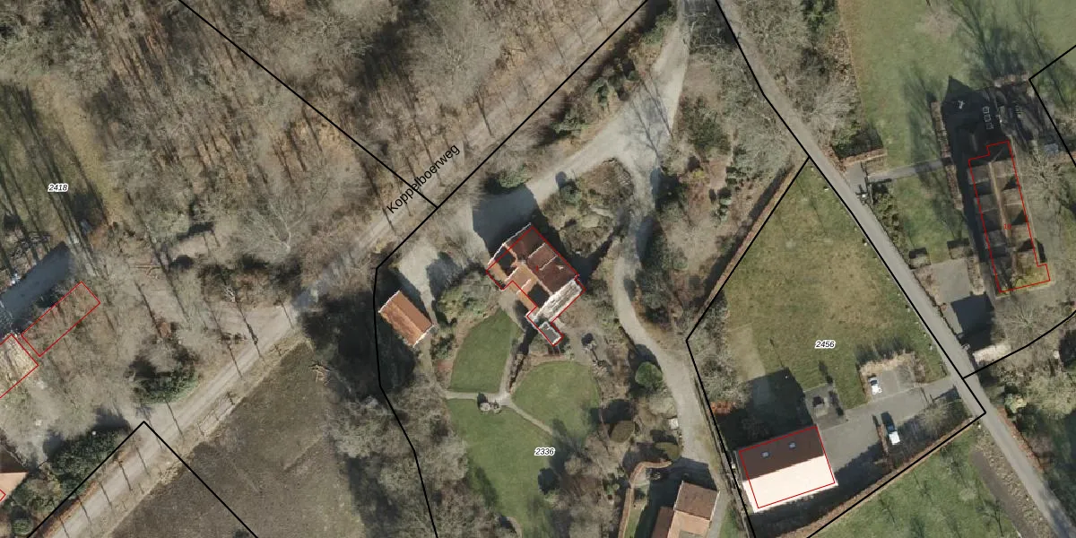 Koppelboerweg 1 is gelegen op kadastraal perceel LSR00G2336. Deze kadastrale aanduiding is uniek en wordt gebruikt door het Kadaster om eigendomsrechten en andere zakelijke rechten vast te leggen. Het perceel maakt onderdeel uit van de kadastrale gemeente Losser.